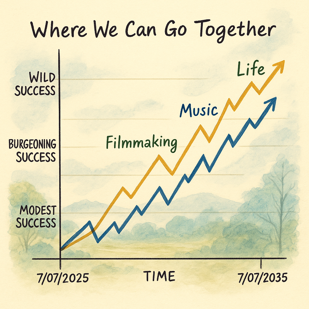 This is a chart I had ChatGPT make to visualize what might happen if all the moments I am creating start rolling into different kinds of new possibilities that I never even imagined.